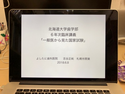 6月8日午前診療は11時からです 2018.06.01 来る6月8日は、 北海道大学歯学部6年生への臨床講義(8:45-10:15)のため 午前の診療を11時からとさせていただきます。 ご迷惑をお掛けしますが、 学生教育へのご理解ご協力をお願いいたします。 マイクロスコープを使用した動画を多く取り入れ、 国家試験問題を通して、一般臨床の解説を行う予定です。