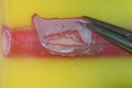 写真は心臓血管外科での冠動脈吻合練習を自分で行ってみたものです.